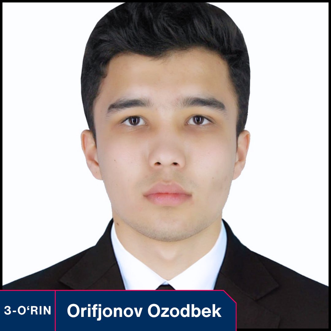 3-o‘rin: (3 000 000 so‘m) Orifjonov Ozodbek Odiljon o‘g‘li – Sirdaryo vil., Gulistan Alpha Academy NTM.